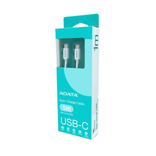 ADATA USB TYPE C TO TYPE C M-M CABLE WHITE support 100W, QC 3.0, PD 3.0 - CACC-100PN-WH